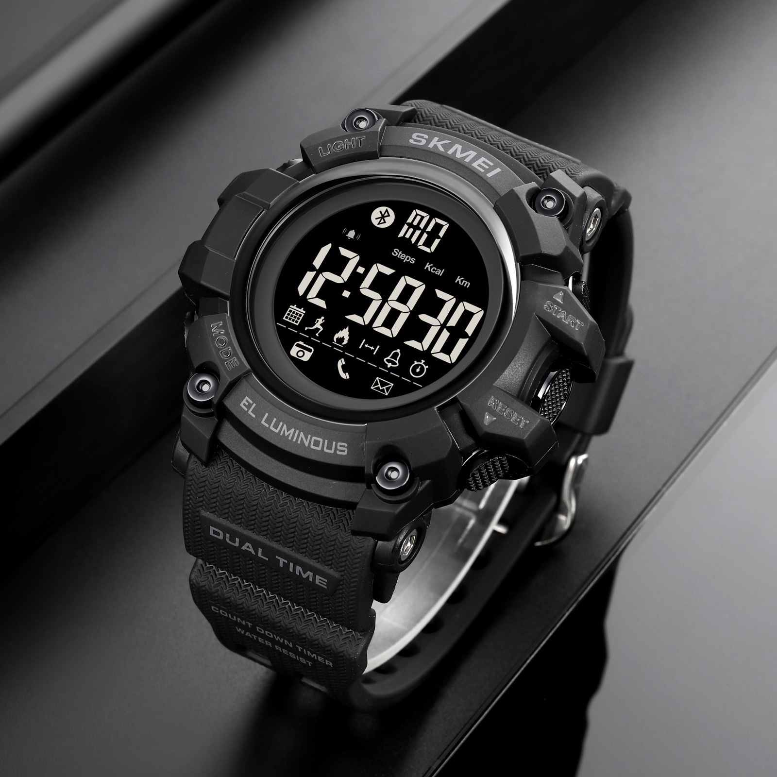 ساعت هوشمند اسکمی مدل 2053 از طریق بلوتوث به انواع موبایل ها متصل می شود و امکانات متنوعی را در اختیار شما قرار می دهد. با استفاده از این ساعت، می توانید به تماس ها و پیام های خود پاسخ دهید، به موسیقی گوش دهید، و از امکانات دیگر مانند قدم شمار، مسافت سنج، نمایش کالری سوزانده شده، هشدار تماس ورودی، نمایش روزهای هفته، آلارم، کورنومتر، تقویم و هشدار پیام و نوتیفیکیشن ورودی بهره مند شوید.