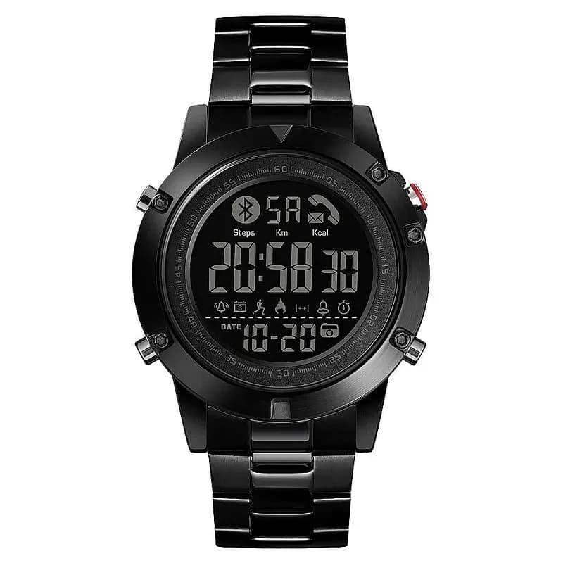 اسکمی 1500 مشکی به راحتی از طریق بلوتوث به انواع موبایل متصل می شود و به شما امکان دسترسی به اطلاعات و امکانات متنوعی را می دهد. با استفاده از این ساعت، می توانید تماس های ورودی را مشاهده کنید، پیام ها و نوتیفیکیشن ها را دریافت کنید و از امکانات دیگر مانند قدم شمار، مسافت سنج و کالری سوزانده شده بهره مند شوید.
