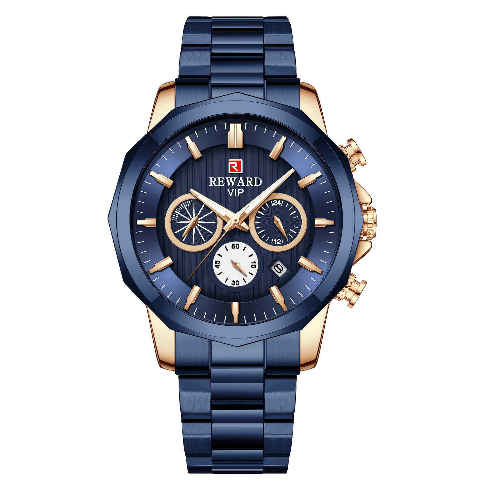 REWARD 81063 با طراحی شیک و مدرن خود، مناسب برای استفاده روزمره و مناسبت های خاص است. قاب و بند استیل ضد زنگ این ساعت، ظاهری لوکس و مقاوم به آن می بخشد. رنگ ثابت ساعت نیز از تغییر رنگ آن در طول زمان جلوگیری می کند.