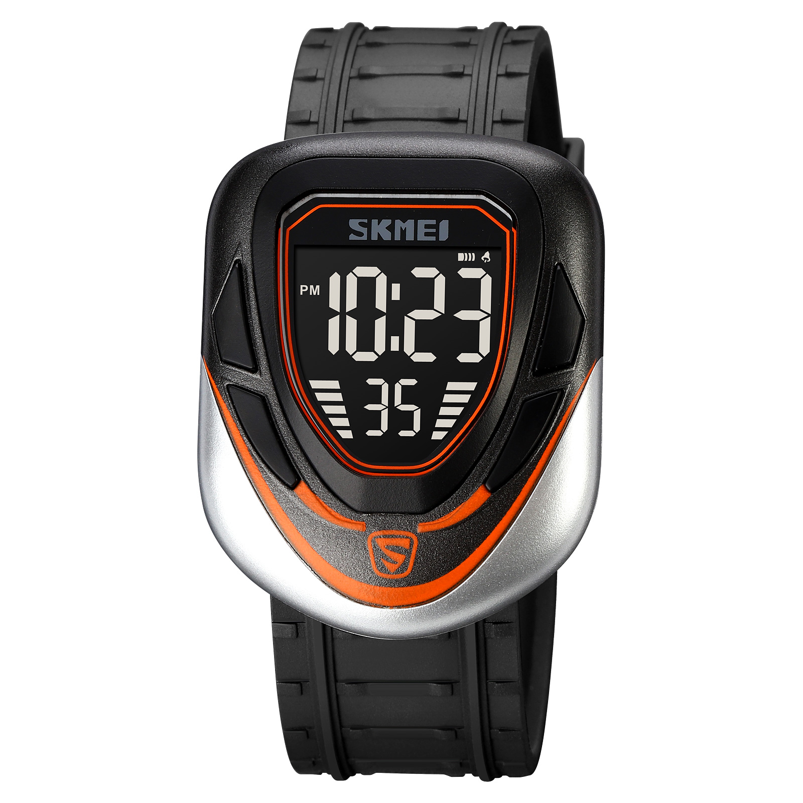 ساعت مچی مردانه، اسکمی، دیجیتال، نارنجی، نقره ای، PU، کورنومتر، آلارم، تقویم، نمایش روزهای هفته، نور پشت صفحه، ضد آب، قیمت مناسب، خرید آنلاین