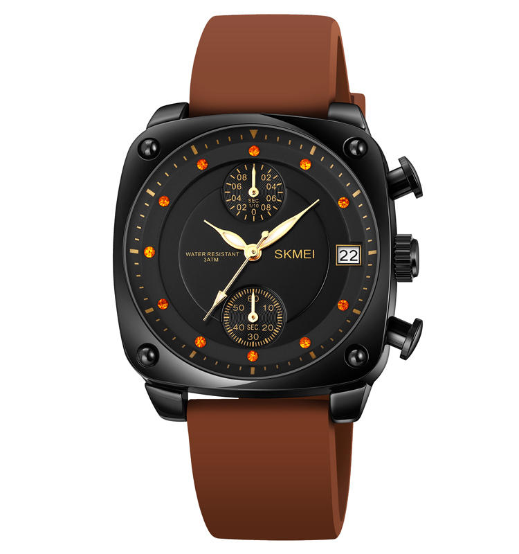 ساعت اسکمی 1903 با طراحی زیبا، ویژگی های کاربردی و قیمت مناسب، انتخابی ایده آل برای آقایان است. این ساعت با بند سیلیکونی قرمز و قهوه ای، ظاهری جذاب و اسپرت به شما می بخشد و با سه موتور فعال کورنوگراف، امکان زمان سنجی دقیق و حرفه ای را برای شما فراهم می کند.